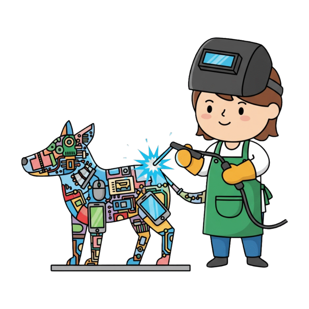 Discarded technology reimagined as art. Sculptures, wall pieces, and custom installations transform e-waste into unique décor. Sustainable, striking, and supporting our mission to reimagine what’s possible with retired tech.