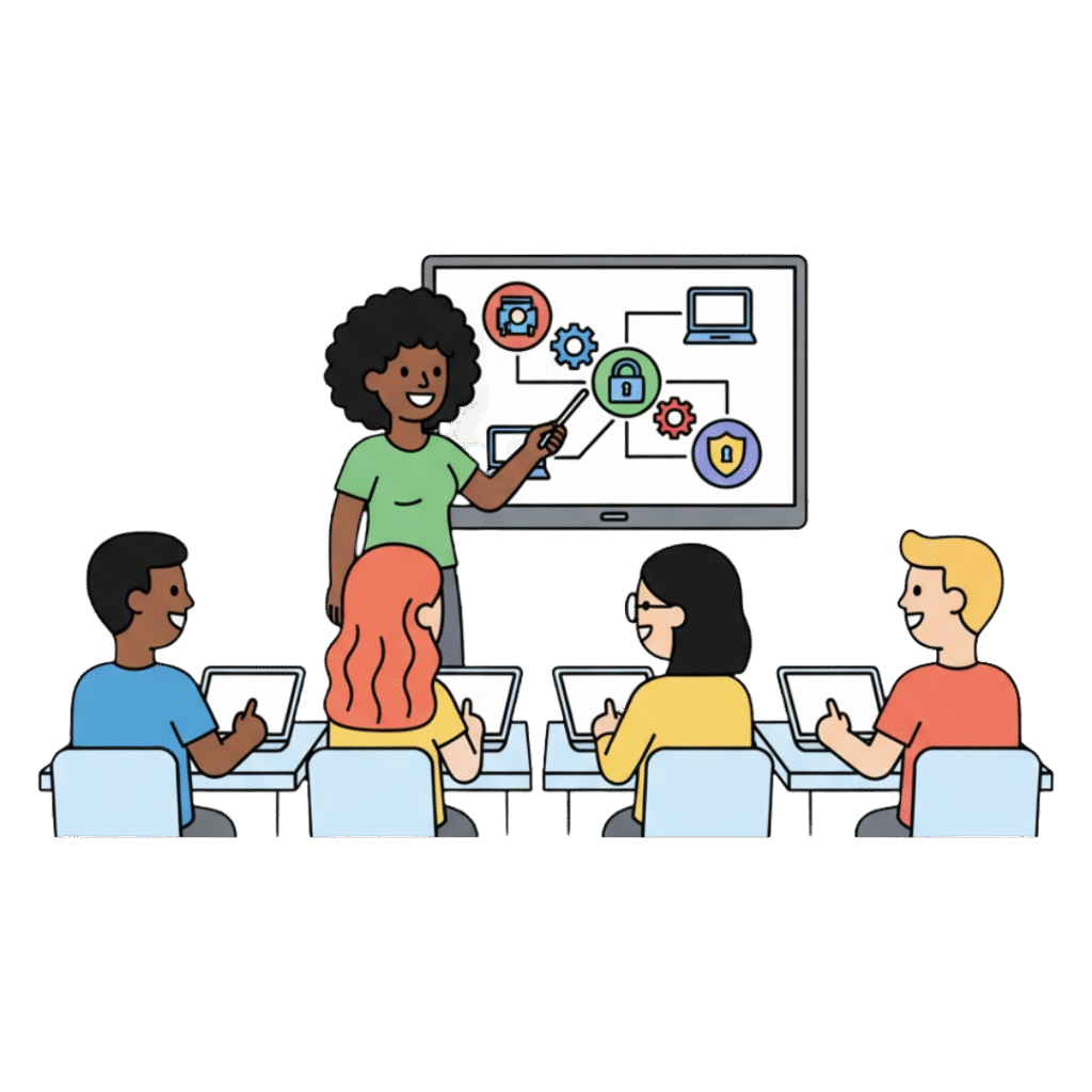 Cybersecurity, AI ethics, and software skills training that actually sticks. Hands-on workshops tailored to your team’s needs, building confident employees while supporting digital equity in our community.